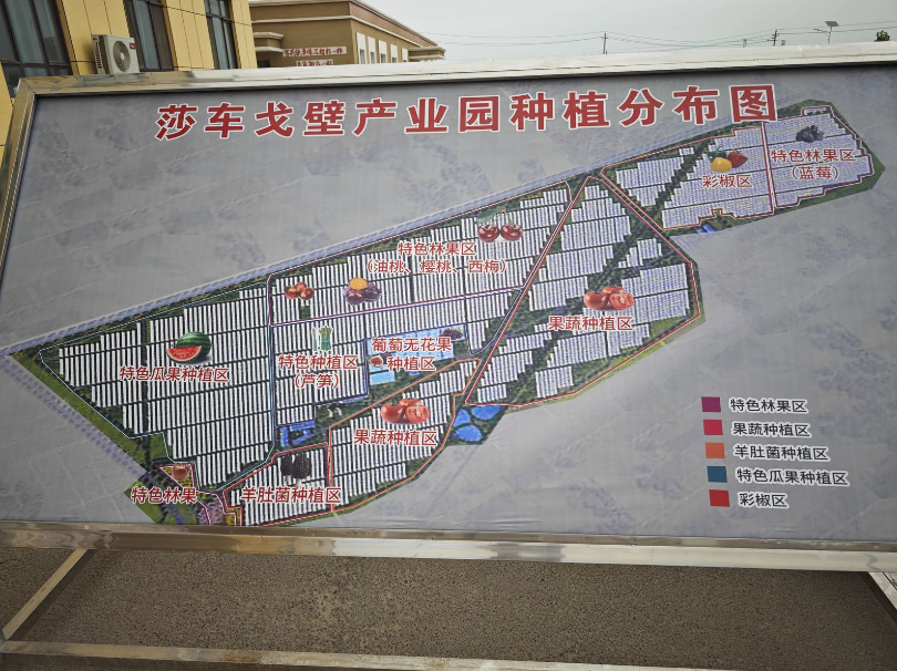 访谈团的第一站来到了莎车戈壁产业园。产业园建设于2021年,目前建设温室大棚3000座,规模为南疆最大。产业园通过“承包种植、企业就业、园区聘用、自主创业”等方式,为外出就业难的群众提供就业平台,拓宽稳定就业增收渠道;将大棚承租费用用于确权村集体和贫困户分红(村集体30%、脱贫户70%)。为解决就业人员后顾之忧,在产业园建设700套公租房,136户农户举家入住园区,72名学生就近上学,目前稳定就业近3000余人,人均月纯收入2000-3000元,使种植经营户从传统农民转变为现代农业体系下的产业工人,使戈壁荒滩变成稳定增收的“就业园”。