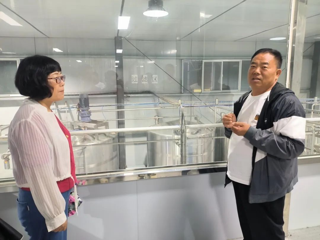 ▲访谈团在贾西村刺梨产业园原浆加工厂