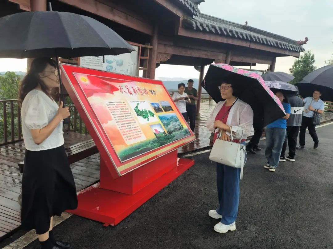 ▲访谈团在雨中调研了盘关镇贾西村刺梨产业园
