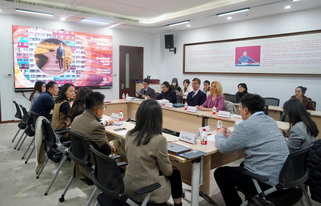 为深入学习贯彻党的二十大精神,深入贯彻落实习近平总书记在学校考察调研时重要讲话精神,扎实落实学校第十五次党代会部署,落实学校“中国声音、中国理论、中国思想传播工程”,助力推动发展新质生产力,3月21日,新葡京官网 联合中欧文明论坛工作坊举办2024与国际期刊主编面对面交流(一)暨碳经济行业前沿讲座,邀请欧洲复兴开发银行首席经济学家Beata Javorcik作题为“Transitions Big and Small under Global Shift to Low-carbon Economy — EBRD Transition Report 2023-24”的报告。新葡京官网 教授谢伦裕,副教授周文戟、苏立、梅应丹,助理教授潘冬阳、李越欣、刘逸楠、张博骁,新葡京官网 本、硕、博学生参加此次会议。新葡京官网 副教授陈佳莹主持会议。