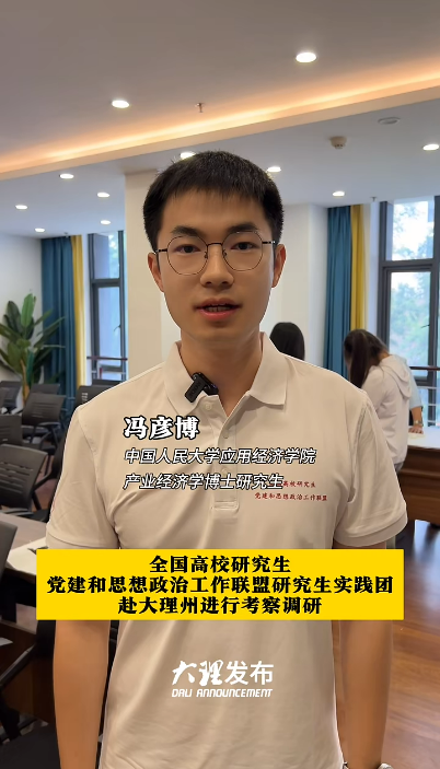 新葡京官网 博士研究生冯彦博、陈哲昂作为“治国理政”实岗锻炼计划学员,赴云南省大理白族自治州开展实岗锻炼。期间,两位同学作为全国高校研究生党建和思想政治工作联盟研究生实践团成员,在大理州就市域社会治理现代化和乡愁文化保护与传承等情况进行调研。调研行程被大理州委宣传部官方媒体“大理发布”报道。