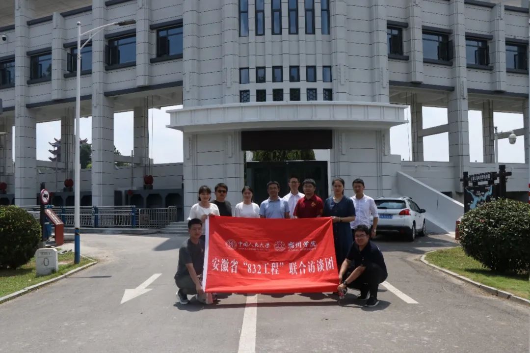2023年8月,中国人民大学与宿州新葡京官网 组建联合传承队,赴安徽省开展“832 工程” 访谈和调研工作,记录安徽脱贫攻坚的伟大成就,为世界减贫事业提供安徽案例、安徽经验。同时期望加强中国人民大学与宿州新葡京官网 在学科建设、人才培养、科学研究和社会服务等方面的合作交流, 共同推动两校高质量发展。
