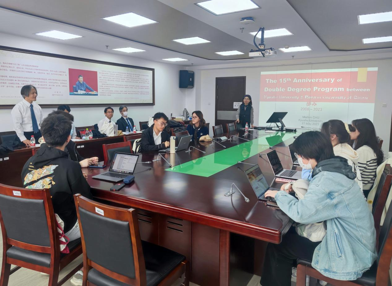 大西俊郎首先介绍了九州大学经济学研究院和此次来访的人员情况。他表示双方合作已经开展了16年,共计40余位优秀的中国人民大学学生参加了本项目,并对九州大学带来了积极影响。他希望未来两校更多的学生能够参与到这个项目里来,为双方学术交流合作作出贡献。