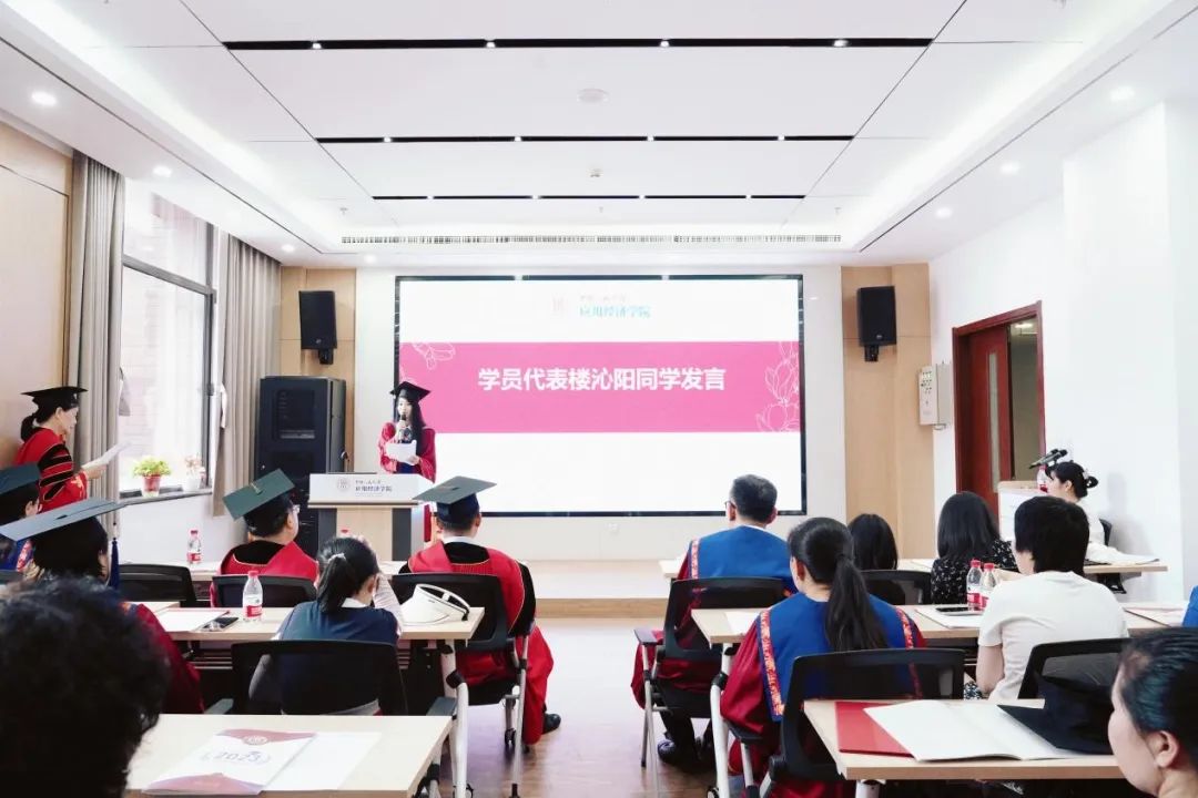 学员代表楼沁阳发言。楼沁阳表示,非常珍惜在人大的学习机会,与母校相识十二年,是中国人民大学严谨务实的学风,来自新葡京官网 领导和老师的悉心关怀,家人的理解与支持、同学间的帮助与扶持,还有自己对学业的不断追求和不懈付出将自己送至今天这一高光时刻,今天取得的成就是多方努力的结果。愿在今后的工作学习中,向前行进的脚步不停,传承人大红色基因,始终与祖国同向,与人民同心,与母校同行。