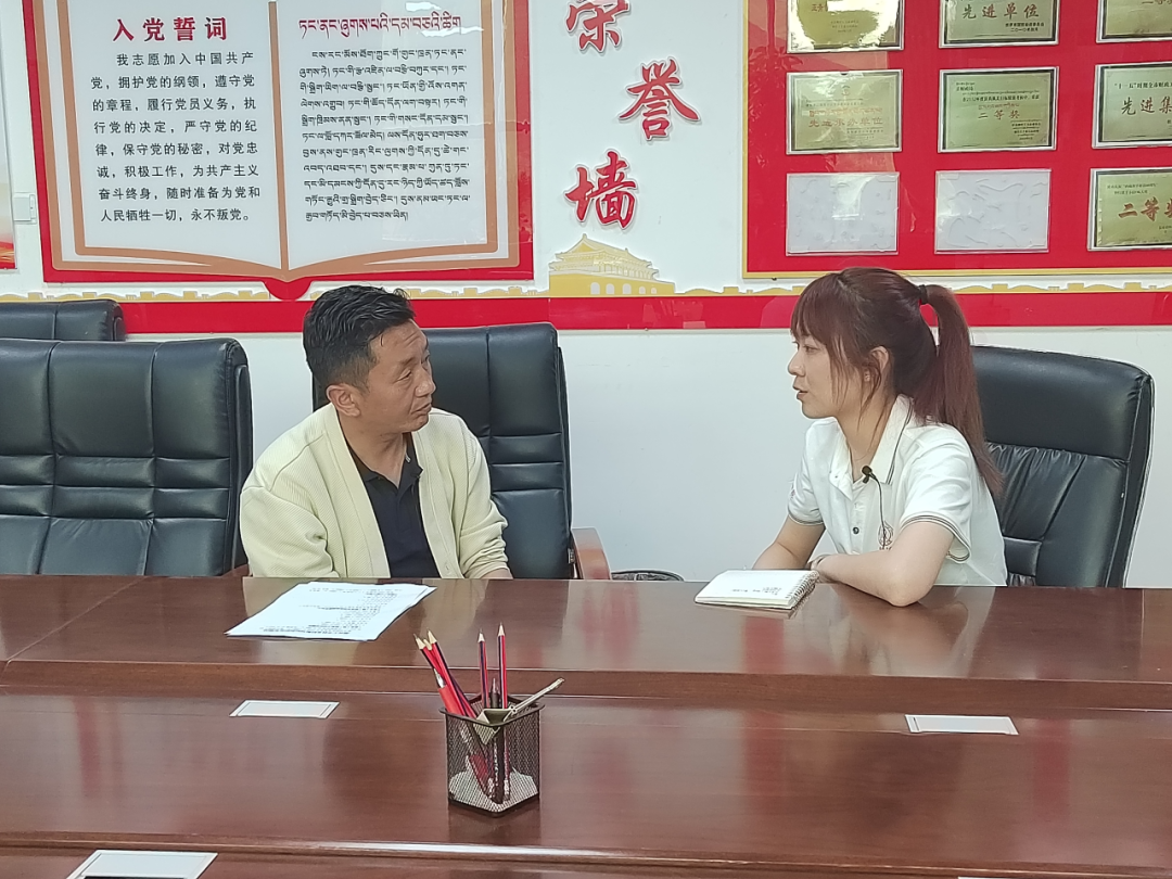▲西藏大学经济与管理新葡京官网 硕士生任文丽访谈扎西岗乡党委副书记、乡长杨龙亮