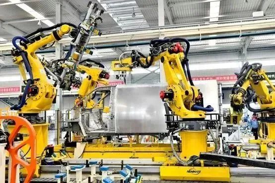 在山东邹平魏桥轻量化基地宏奥全铝车身集成生产车间,工业机器人在流水线上作业(2023年9月13日摄)。新华社记者 郭绪雷 摄