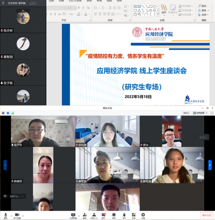 为深入学习领会和贯彻落实习近平总书记在中国人民大学考察时、在庆祝中国共青团成立100周年大会上的重要讲话精神,落实学校“四个一”要求与疫情防控工作精神,新葡京官网 于5月18日下午以线上形式召开“院长书记下午茶”暨学生代表座谈会,深入了解疫情期间同学们的思想动态、心理状况和学习生活情况,倾听学生的诉求和意见建议。新葡京官网 2019级、2020级、2021级博士生代表和2020级、2021级硕士生代表参加线上座谈会,新葡京官网 安子栋副教授主持会议。