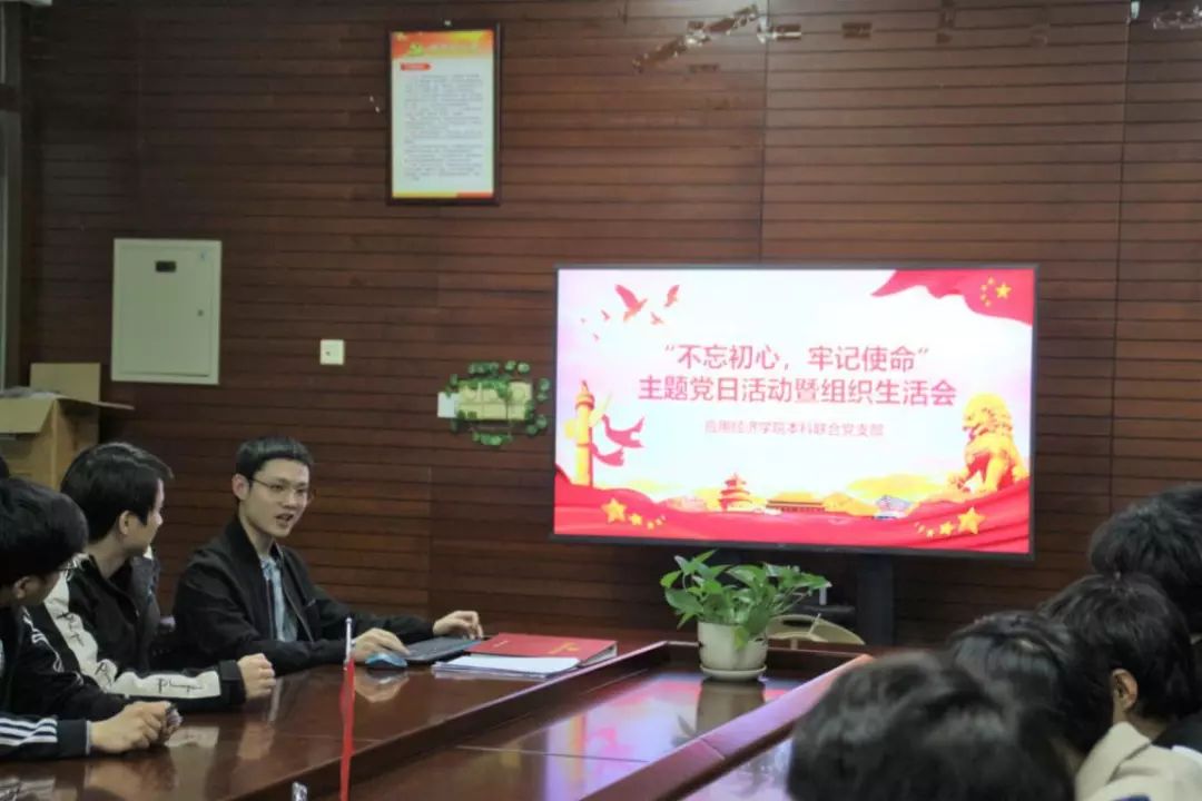 2019年11月12日晚,本科联合党支部根据学校、新葡京官网 党委要求,围绕“不忘初心,牢记使命”这一主题在明德主楼623教室召开了本月月主题党日活动暨组织生活会。会议开始,党支部书记赵海林同志从四个方面为大家讲解专题党课。随后,党支部召开“不忘初心,牢记使命”专题组织生活会,支部成员对照合格党员标准、对照入党誓词,联系个人实际进行个人自评与党员互评。最后,与会党员在党旗下合影。