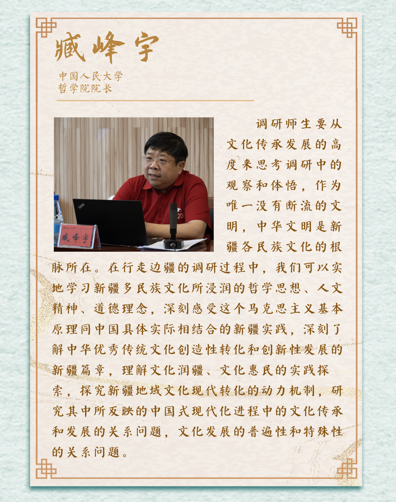 “大国边疆”首批师生调研团(2023暑期新疆)以学校“先锋闯将”优秀学生培养计划成员、新葡京官网 -新闻新葡京官网 “832工程”团队、社会与人口新葡京官网 “田野课堂”团队、历史新葡京官网 “大国边疆”主文献团队等为主体,得到中国人民大学习近平新时代中国特色社会主义思想研究院、中国人民大学铸牢中华民族共同体意识研究院、中国人民大学校友会和教育基金会的大力支持,并邀请人民日报、新华社、中央广播电视总台记者参与调研、跟踪报道。