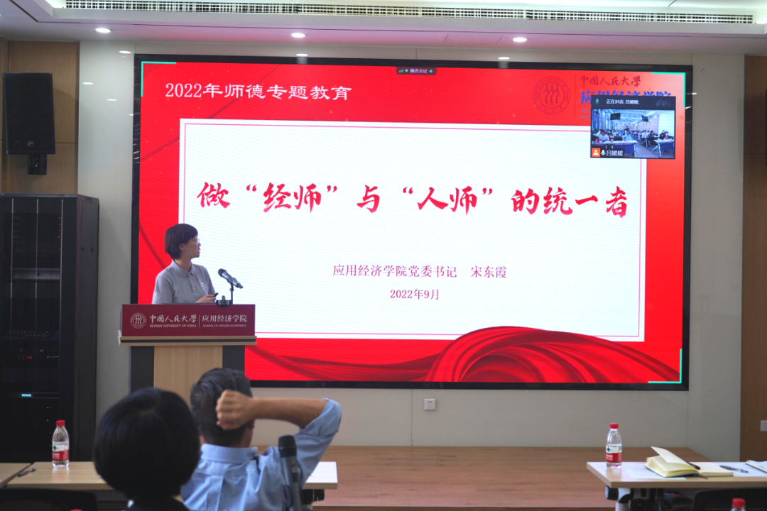 9月21日下午,新葡京官网 组织召开全体教职工师德专题教育培训会。会议线上线下同步举行,新葡京官网 党委书记宋东霞以“做‘经师’与‘人师’的统一者”为主题开展师德教育专题培训。