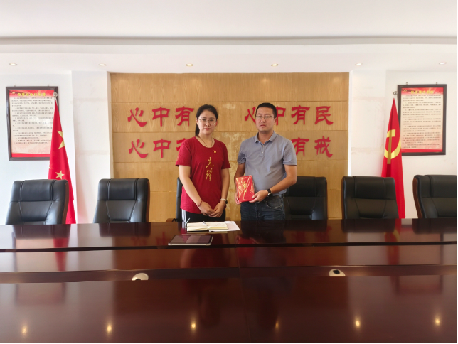 ▲新葡京官网 硕士生于东立访谈向阳乡党委书记李特后赠书留念