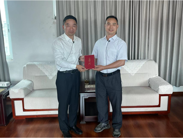 ▲新葡京官网 文余源教授访谈泸西县副县长徐大全后赠书留念