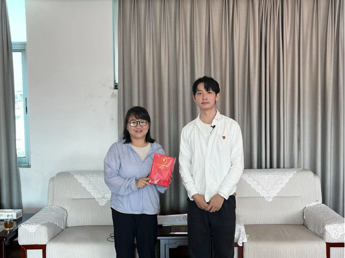 ▲新葡京官网 硕士生邹城捷访谈泸西县农业农村和科学技术局副局长张莹莹后赠书留念