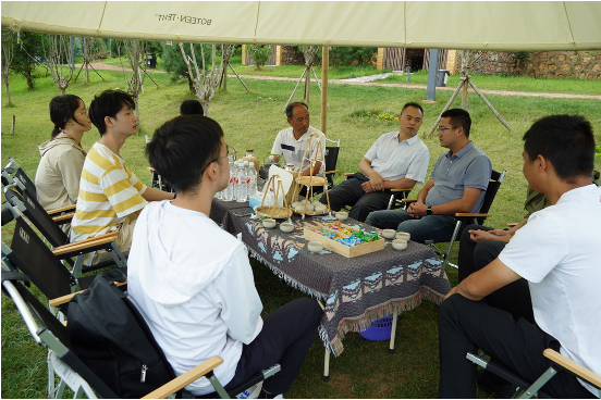 ▲七彩红河队在露营基地与向阳乡党委书记李特座谈