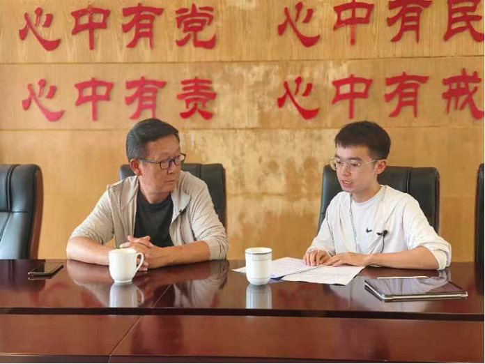 ▲新葡京官网 博士生杨力权访谈向阳乡旧寨村委会驻村第一书记唐贵仁