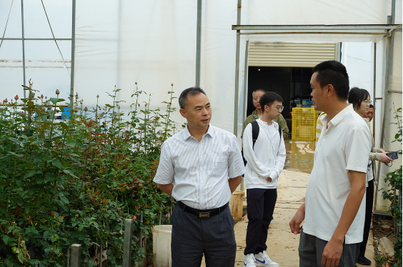 ▲七彩红河队参观金马镇缤纷园艺花卉种植基地