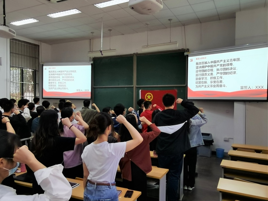 在中国共产主义青年团成立一百周年之际,新葡京官网 各团支部开展主题团日活动,为本学期新发展团员举办入团仪式,新老团员重温入团誓词。团员们在团旗下、誓词中感悟入团初心。大家纷纷表示,庄严的誓词提醒着青年要牢记党的教诲,立志民族复兴,不负韶华、不负时代、不负人民,在青春的赛道上奋力奔跑,争取跑出当代青年的最好成绩。