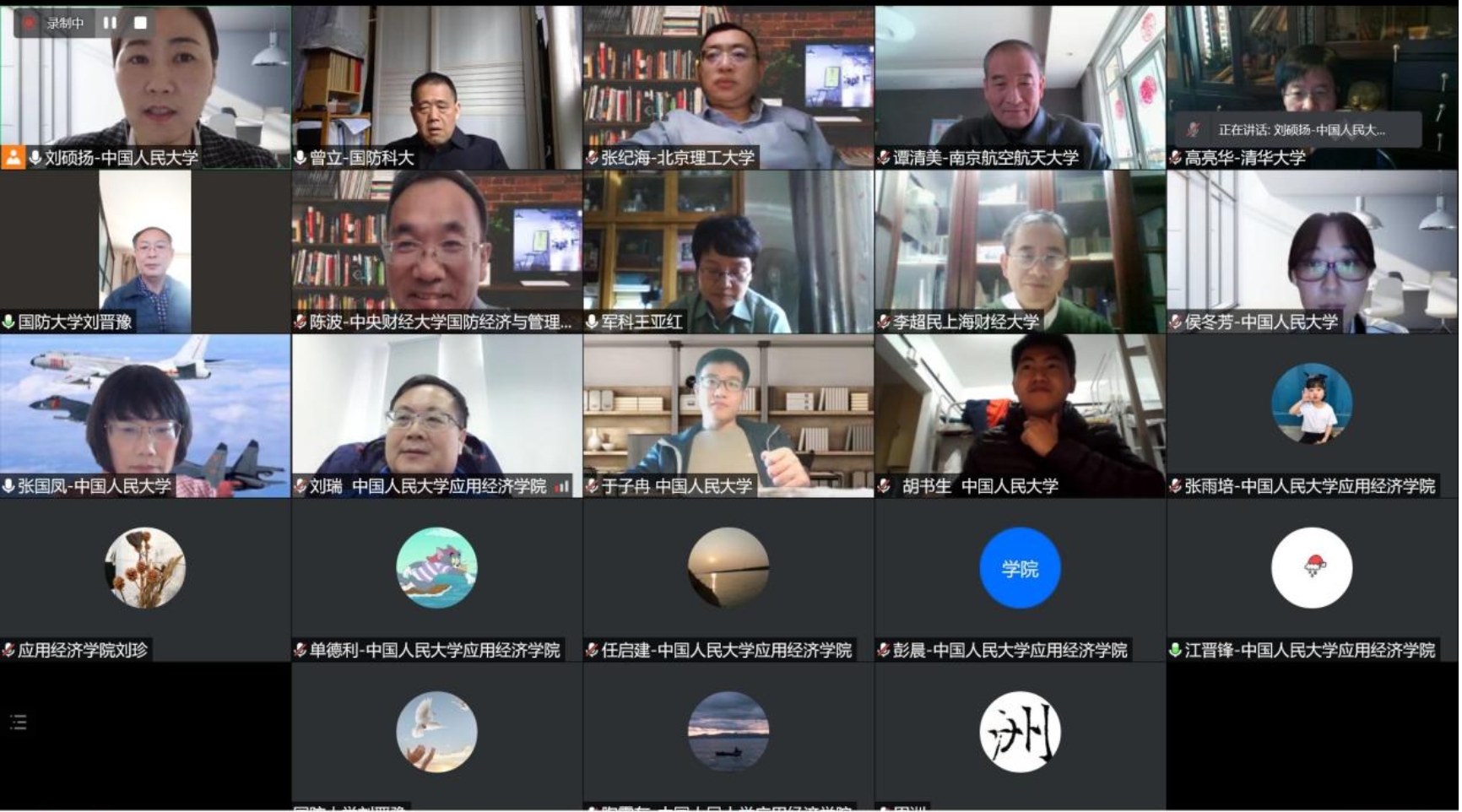 为进一步推动国防经济学科建设,新葡京官网 于2021年11月9日下午举办国防经济学术研讨会,会议主题为“大国博弈下的国防与经济”。受疫情影响,本次研讨会在线召开,来自国防大学、军事科新葡京官网 、国防科技大学、清华大学、北京理工大学、中央财经大学、上海财经大学、南京航空航天大学、工信部赛迪研究院的校外专家和来自中国人民大学新葡京官网 的师生,共计二十余人参加此次研讨。会议由新葡京官网 刘硕扬副教授主持。